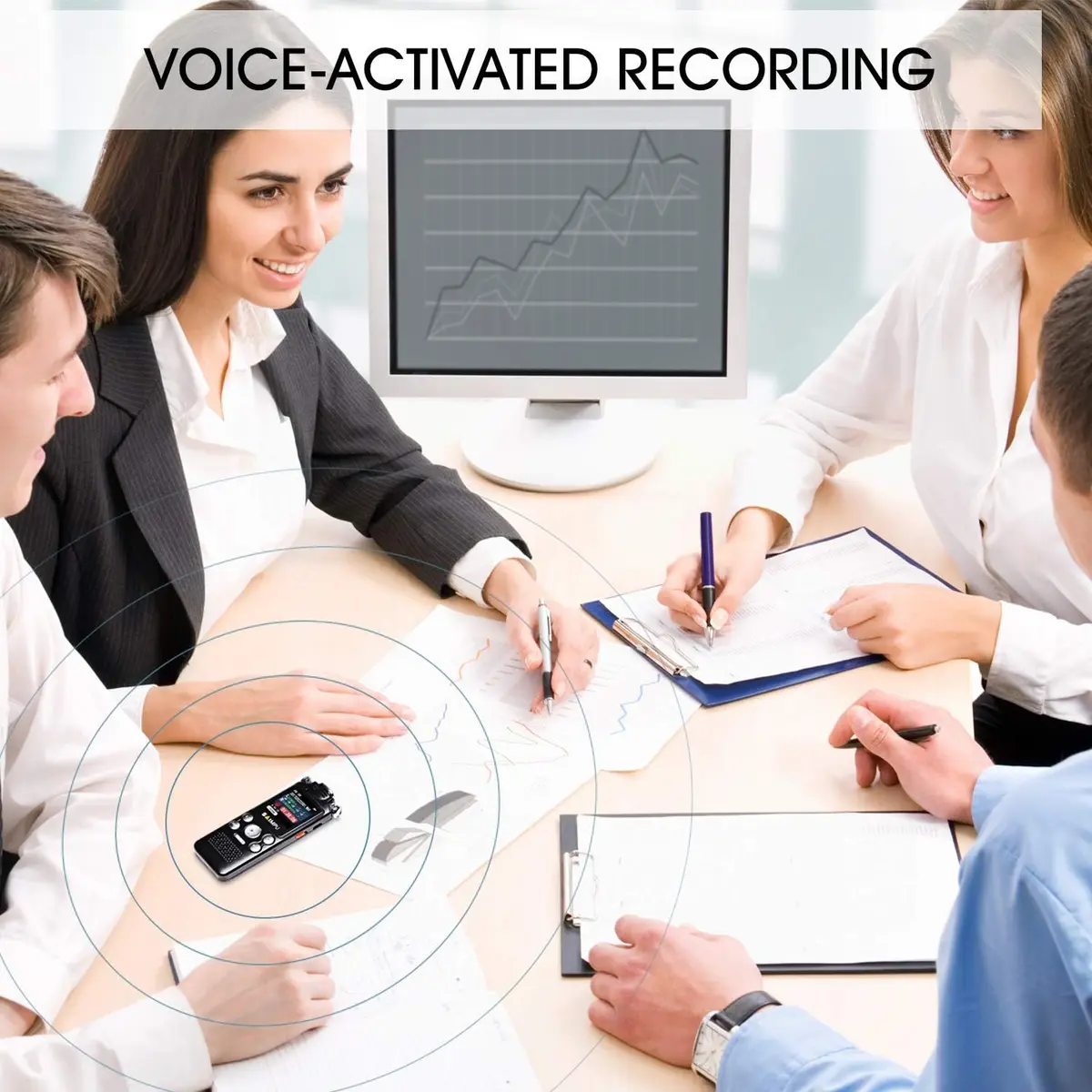 Record with sound, stop without sound.The recorder will record the sound when sound is detected and ignore the silent moments automatically to save storage space, without requiring you pressing "REC" and "STOP" repeatedly