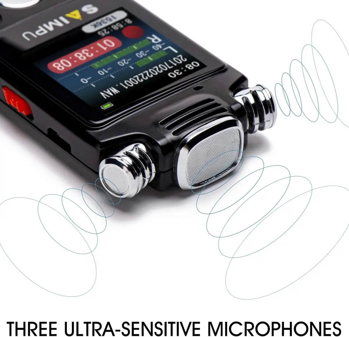 Voice recorder has unique three ultra-sensitive microphones, surround sound recording in all directions will not let you miss any exciting content, suitable for any occasion,can support long distance recording up to 50M.