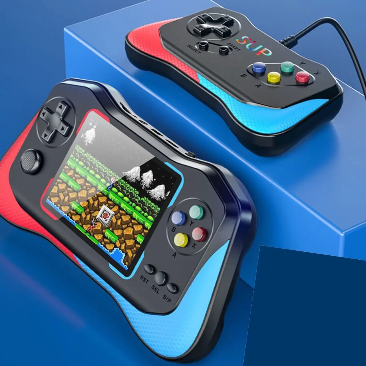Q12 500 in 1 Retro Mini Portable Game Box 3.5 Big Display Game Player Sup Game 8 GB with Super Mario, F1 Race, Super Contra, Adventure Island, Pac Man, etc... (Blue, Red)