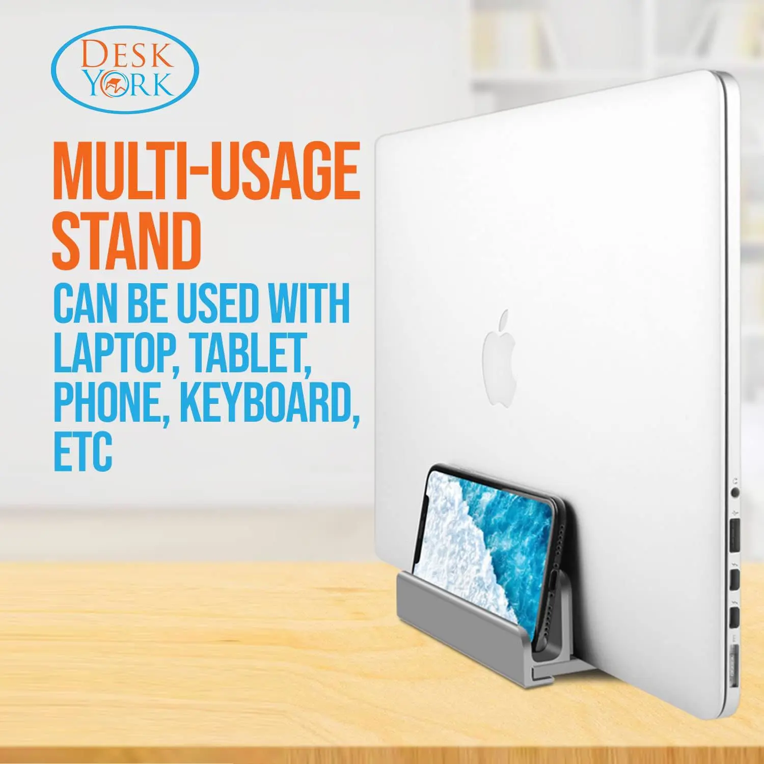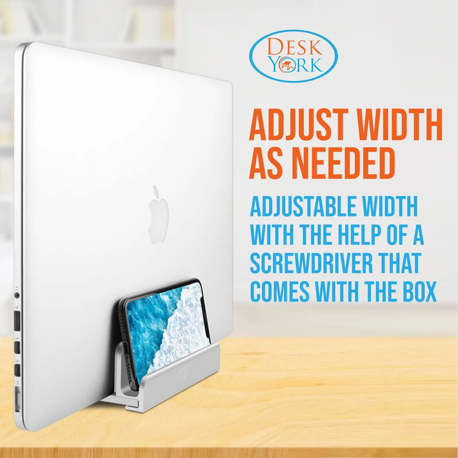 Desk York Adjustable Vertical Laptop Stand Fits All MacBook/ Air/ HP/ Dell/ Samsung/ Lenovo