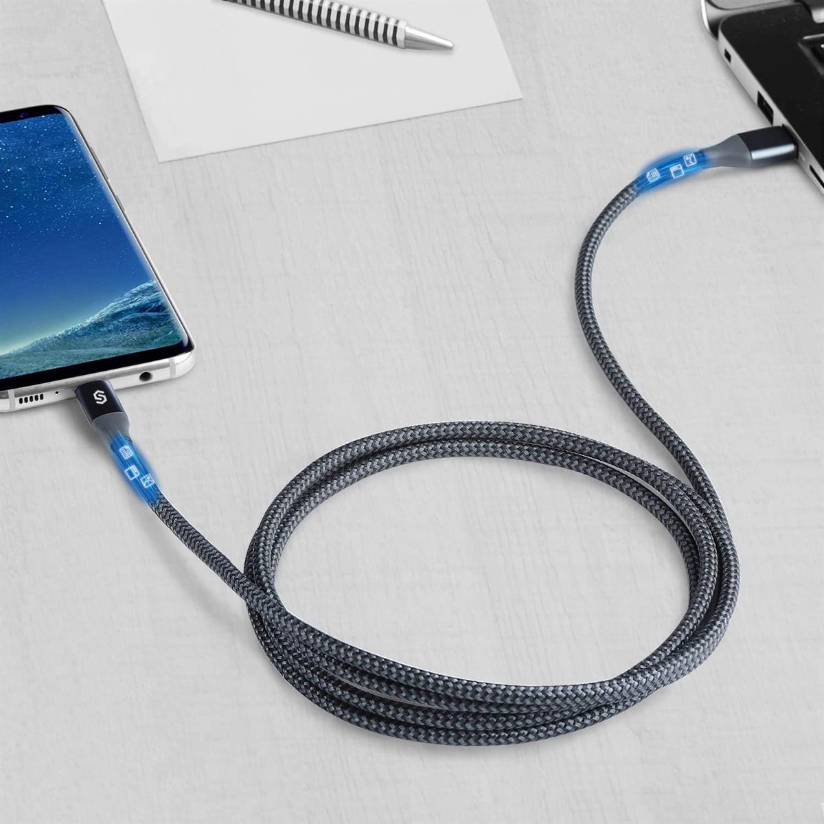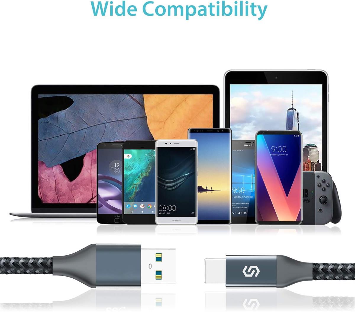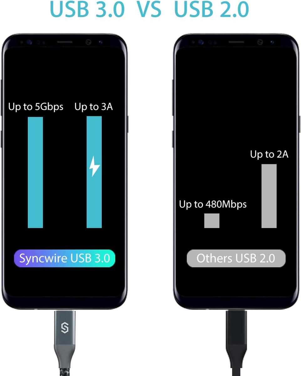 Syncwire Type-C cable is built to last. Encased in aluminum shell, the reversible USB-C connector is strong enough to withstand 8 kg exterior force without breaking off, not to mention falling off while being unplugged. Thus, you can always expect a perfect connection without worrying about a loose connection or a bent tip.
