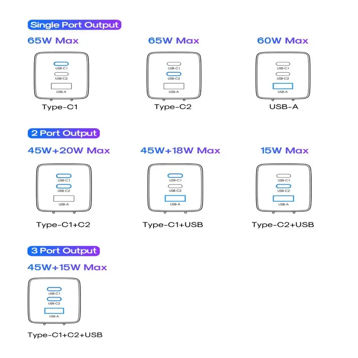 USB-C1+USB-A Output: 45W+18W (Max)