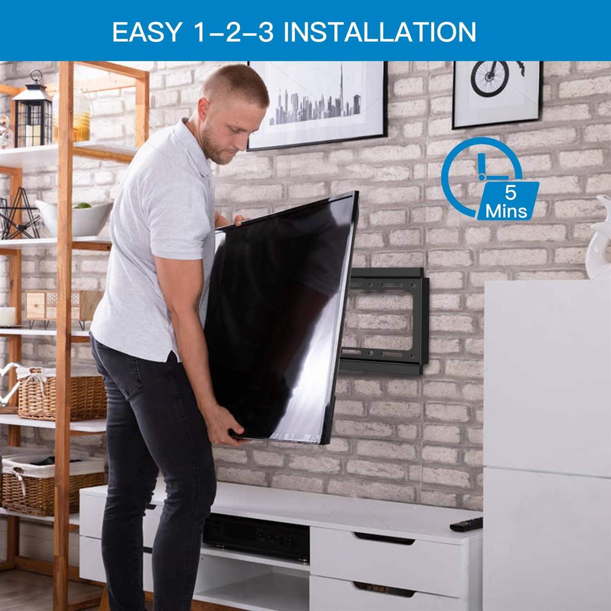 Our fixed TV wall mount won’t tilt down and provide with a secure environment for your family with two safety screws.
