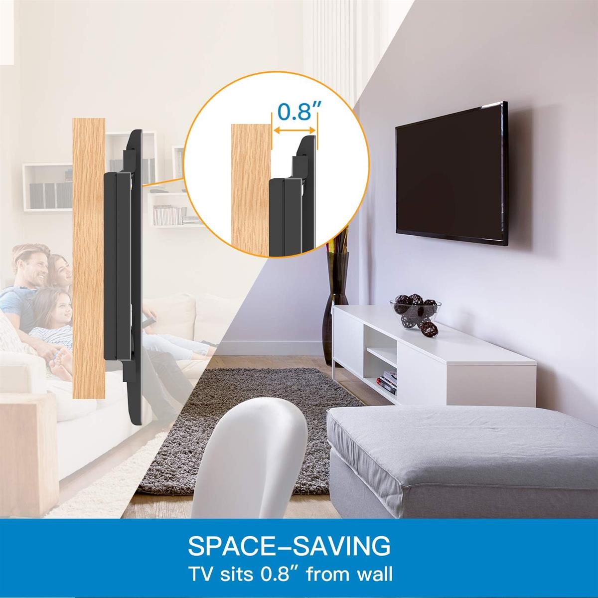 Our ultra slim TV mount can help you use your space more efficiently and creates a visually pleasing appearance in your home.